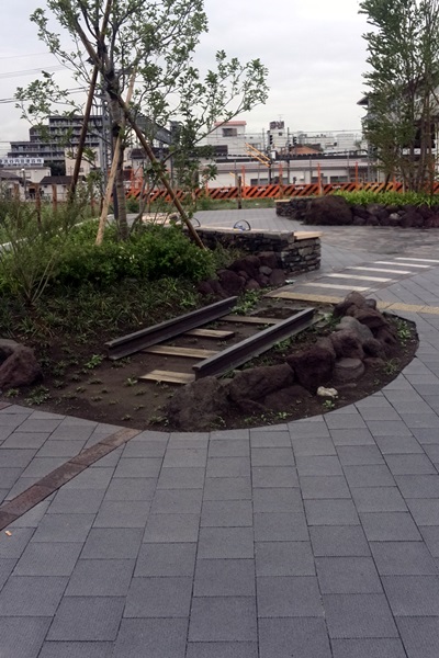駅前整備がほぼ終わった東武動物公園駅。広大な鉄道施設はなくなりましたが、駅前広場は鉄道をイメージしたデザインになっています。