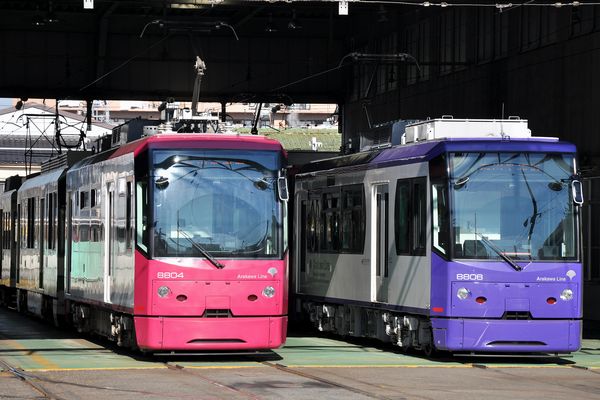 ローズレッドの8804とバイオレットの8806。イエローの8810は車庫内に入っていたのか、この日は見当たらず。ま、2回は行かないと巡り会えないものです(苦笑)。