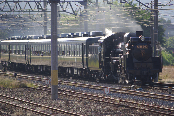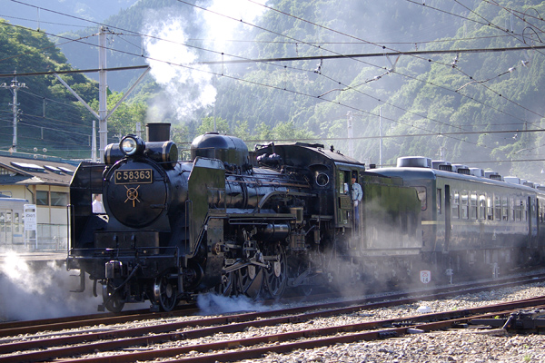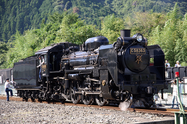 秩父鉄道で動態保存されている C58 363 です。門鉄デフ・形式なしナンバープレートの姿です。(標準デフ・形式付きナンバープレートの従来の姿はここ) でも、門鉄デフはJR九州の58654の方がかっこいいですね。