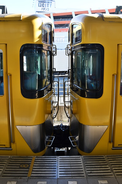 西武2000系の連結面。「車両連結面です。出入り口ではありません。ご注意ください。」の自動放送が流れます。