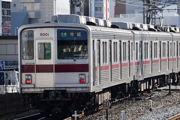 東武東上線柳瀬川橋梁を渡るクハ9107