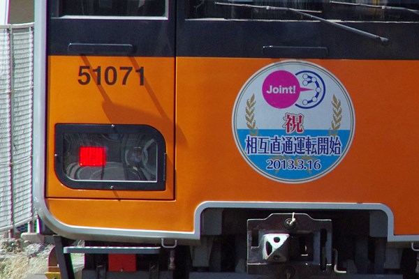 西武の「祝 相互直通運転開始」ヘッドマークです。