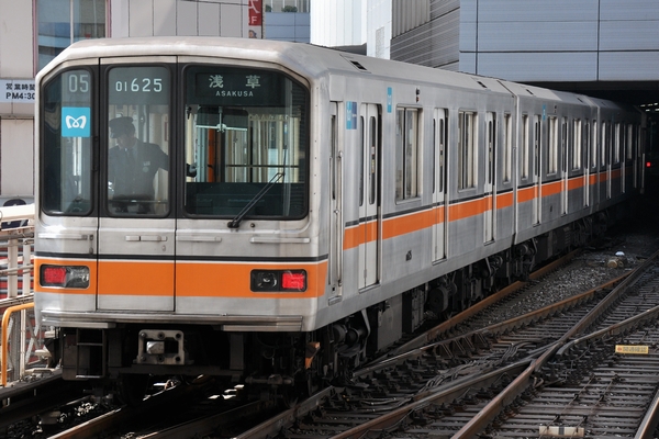 東京メトロ銀座線の1000系1601です。LEDヘッドライトがまぶしく輝いています。
