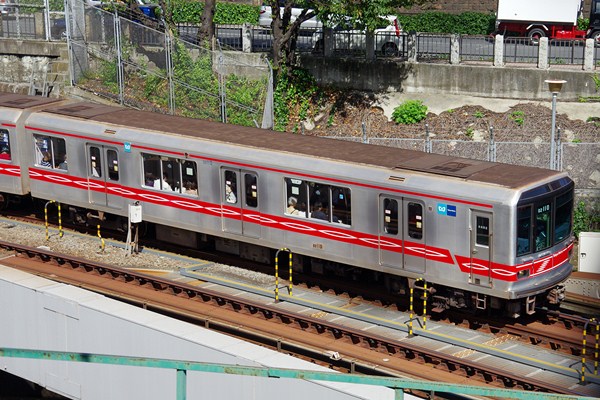 東京メトロ8000系8202です。大型の菱形パンタを2基載せています。そのうちシングルアームに変わってしまうのでしょうか。
