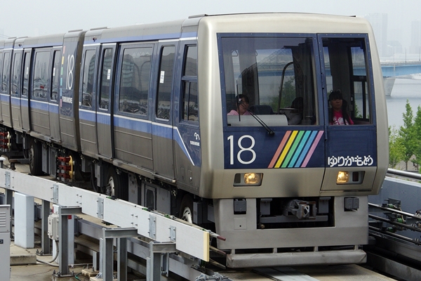 ゆりかもめ7000系第18編成です。先頭は7181。ゆりかもめの車両番号百の位と十の位は、編成番号に対応しています。この編成は7000系第3次車の最終編成です。