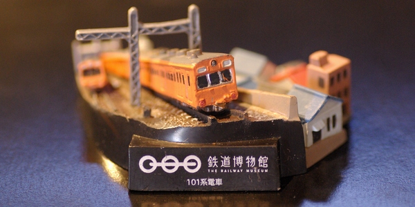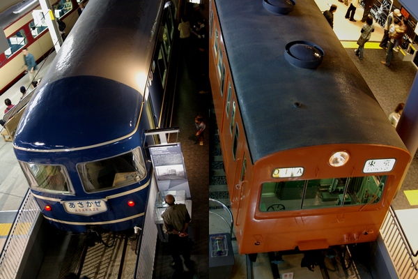 (右)クモハ101-902。鉄道博物館の展示は狭いスペースに詰め込んでいるため、全体として撮影しにくいのですが、その中でもこの車両はもの凄く撮影しにくい位置にあります。ヴィネットの解説パンフの写真もこれだけは背面の写真になっています。