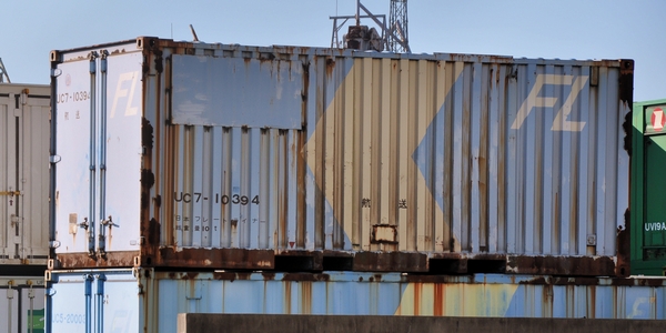 19D-4394コンテナ。「尋常ではない下手くそ」と考えるのは、「塗り直し」あるいは「洗浄」という固定概念に基づくものであり、ほかとは一線を画したこの画風は、コンテナ界に新風をもたらすものとして高く評価できます。給料をもらいながらこんなテキトーな仕事をする作者に会ってみたいものです。