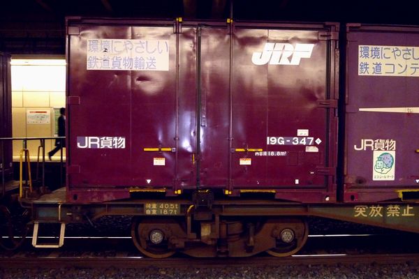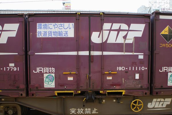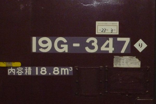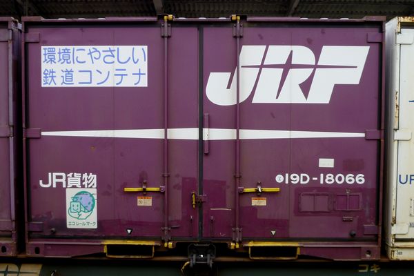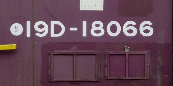 現在の主力コンテナ19D。その18066番。丸印がずいぶん大きいと思ったら、