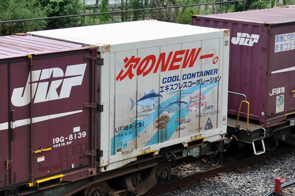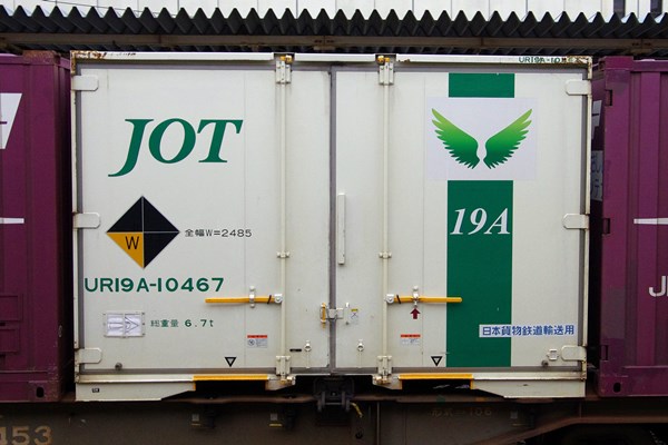 JOT所有の UR19A-10467冷蔵コンテナです。新しい「緑の羽根」塗装です。
