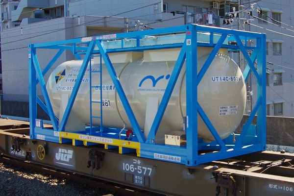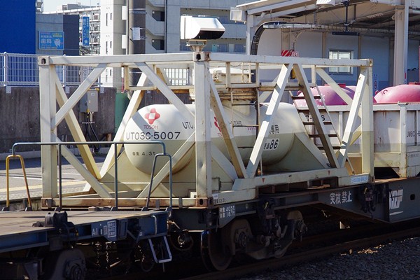 タンクが非常に小さい UT03C-5007タンクコンテナです。東ソー所有の臭素専用です。個数が少ないコンテナです。