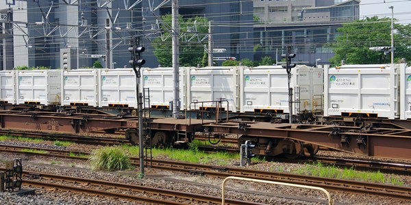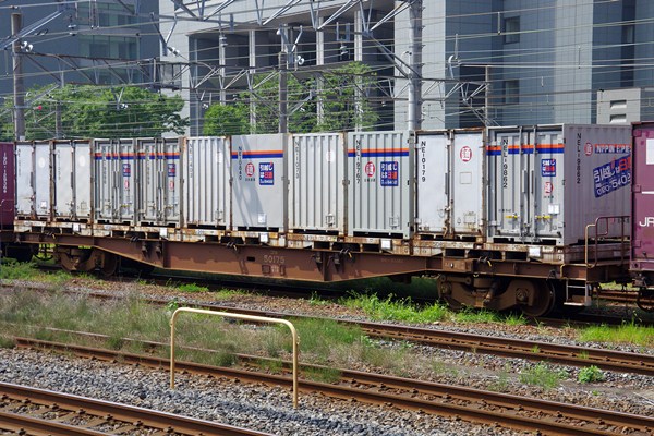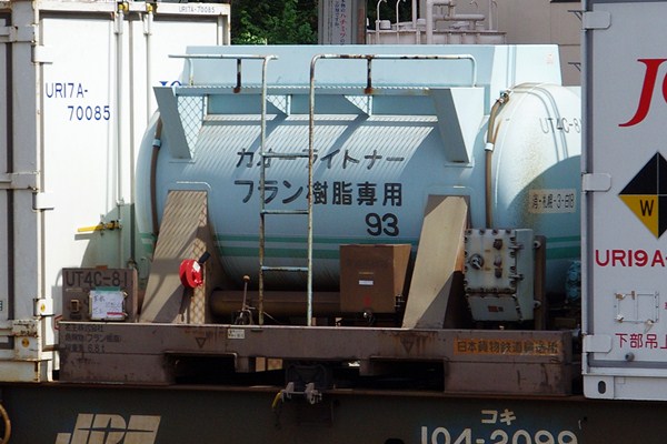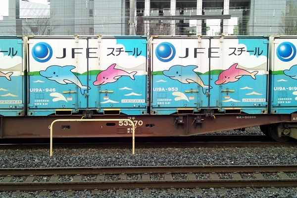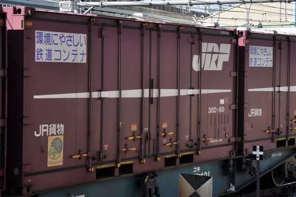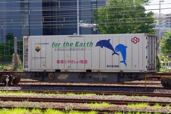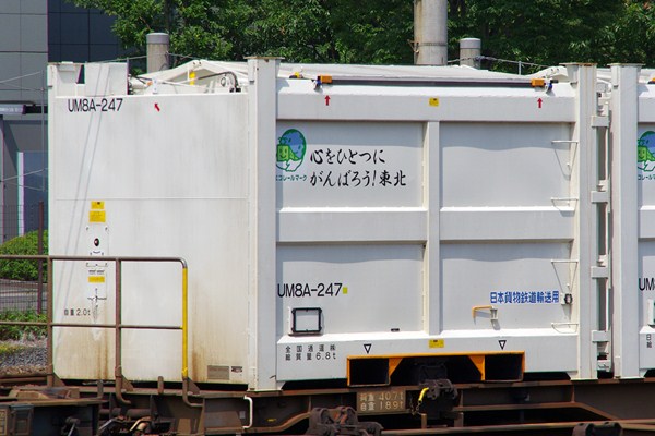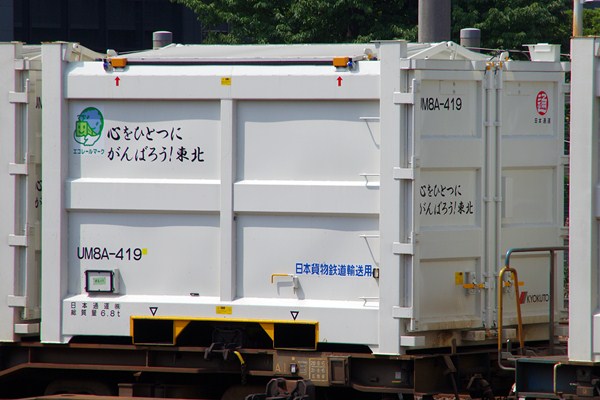 震災がれきの輸送用に新造されたUM8Aコンテナです。ほとんど「専用列車」状態だったので、妻面を観察。