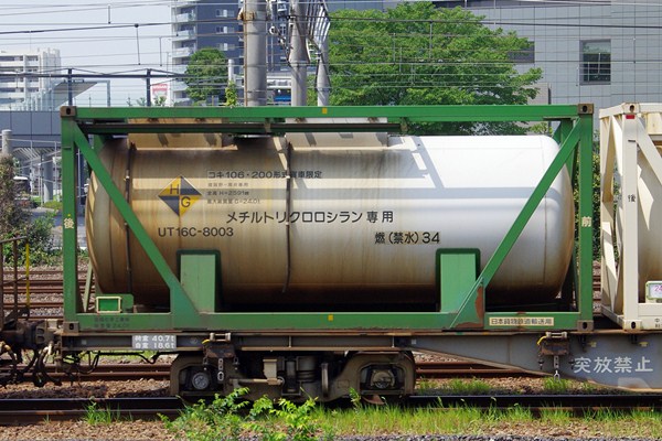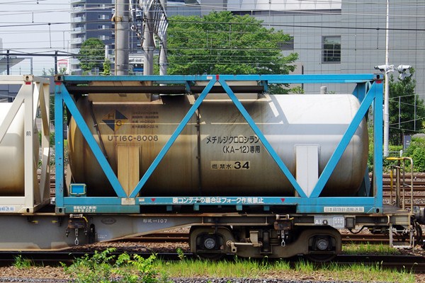 三菱化学物流(MCLC)所有のUT10Cタンクコンテナです。所有会社名には旧社名(化成物流)が残っています。