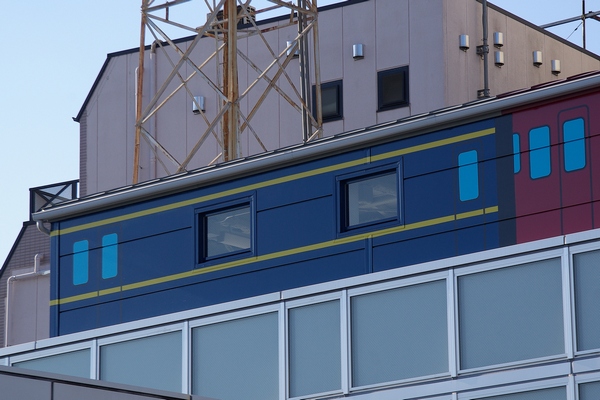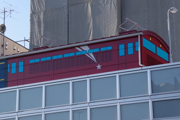 尾久と言えば鉄道の町。屋上の建物はEF81風になっています。パンタまで設置されて芸が細かい。