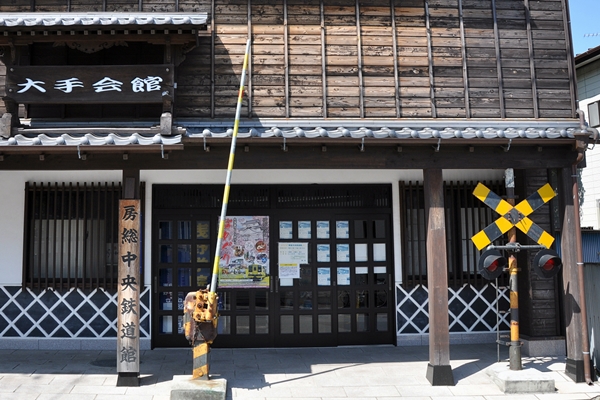 房総中央鉄道館という個人収集の鉄道関連品・鉄道模型の展示施設です。入口に踏切の遮断機と警報灯があります。