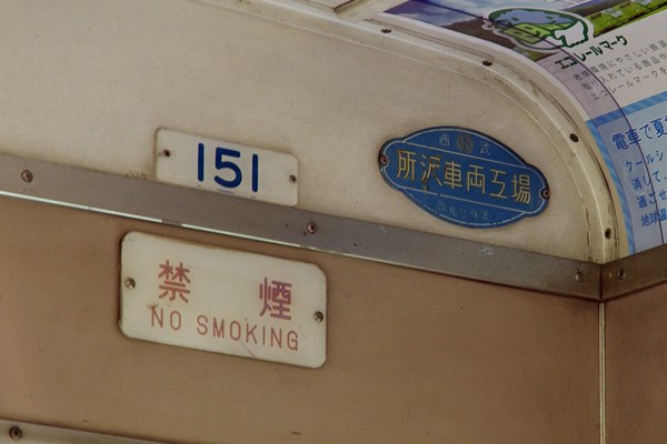クモハ151には、西武所沢工場の銘標が残されています。製造は昭和39年(1964年)。