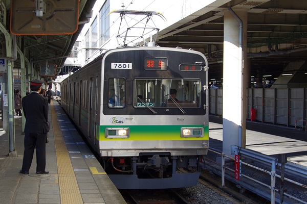 デハ7801(元東急デハ8490)。7800系は中間車から制御車化したため、同じように東急8090系を種車とする7500系とは顔が異なります。