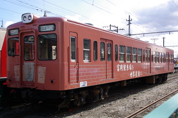 クハ304。200形の制御車でこれがオリジナルの顔。この車両も「富岡製糸場を世界遺産に」のラッピングがあります。