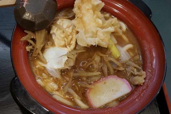 東武東上線・朝霞台駅の小諸そば「熟味噌うどん」460円です。八丁味噌を使った、かなり濃いめの味付けです。小諸そばで初めて「うどん」を食べました。