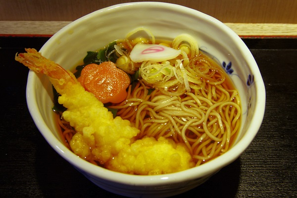 南越谷駅 いろり庵きらく「旬の味ハモ天梅おろしそば」540円(Suica利用で520円)です。(