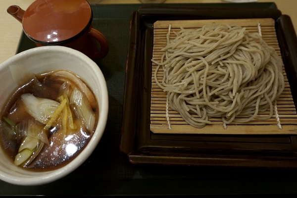 上野駅・国産二八蕎麦 蕎香「鴨せいろ」920円です。つゆは冷たく、柚風味です。