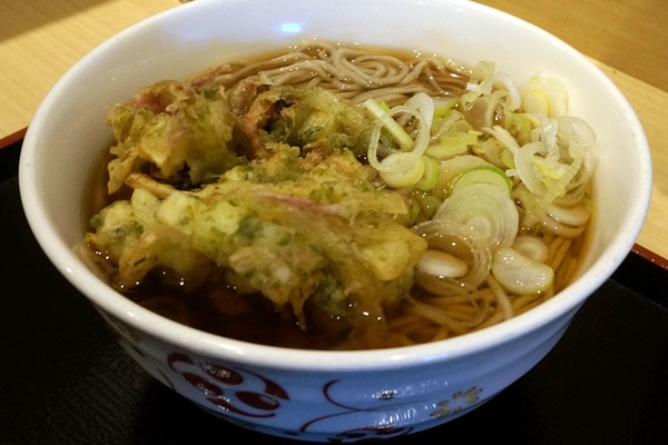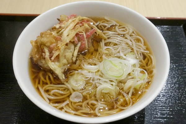 府中本町駅・いろり庵きらく「豚肉と紅生姜のかき揚げそば」500円です。