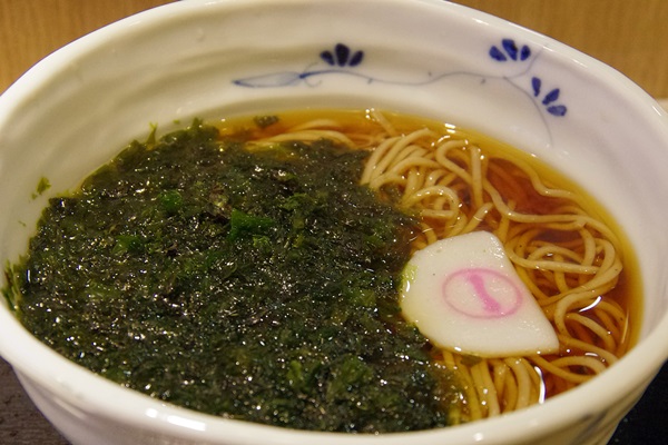 赤羽駅・そばいち「ばら海苔そば」480円です。ネギとわさびが付きます。