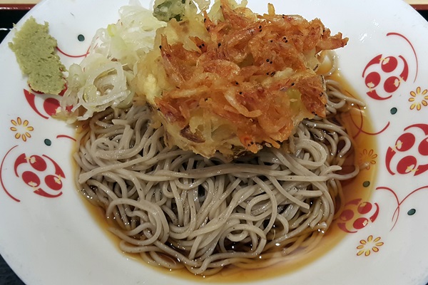 府中本町駅・いろり庵きらく「桜えびの冷しかき揚げそば」520円です。