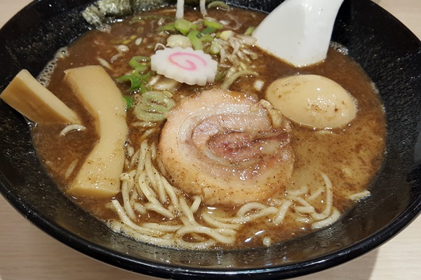 赤羽駅構内にある、赤羽ぶんか亭「鶏つけ蕎麦黒」810円です。NREの店舗で、つけ麺の麺をラーメンから「そば」に変えてみたという商品です。「ラーメン」のつもりで食べれば違和感はないですが、「そば」のつもりで食べると言語道断のレベルです。