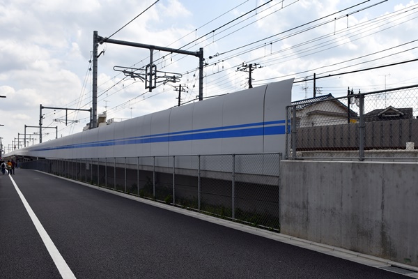 偶然通過した70-000形の高さからみて、穴の高さは 120cm程度だと思われる。高さ制限の標識を付けてほしい。