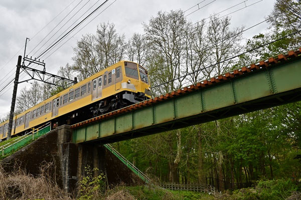 西武多摩湖線 武蔵大和-西武遊園地間にある宅部橋梁です。多摩湖から流れる北川を渡ります。