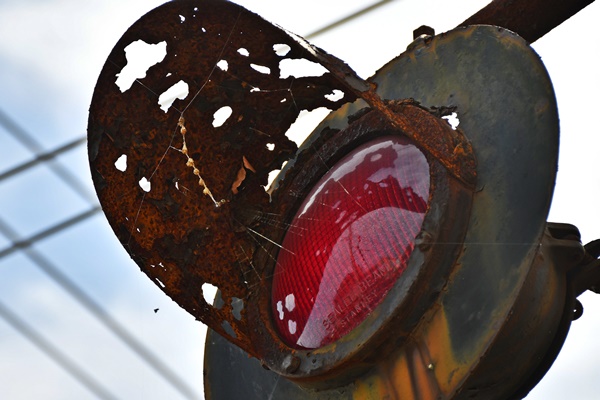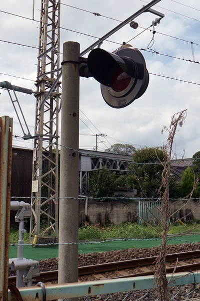 総武貨物線(通称 新金貨物線)新宿(にいじゅく)道踏切にある、珍しい独立1本1個だけの警報灯です。