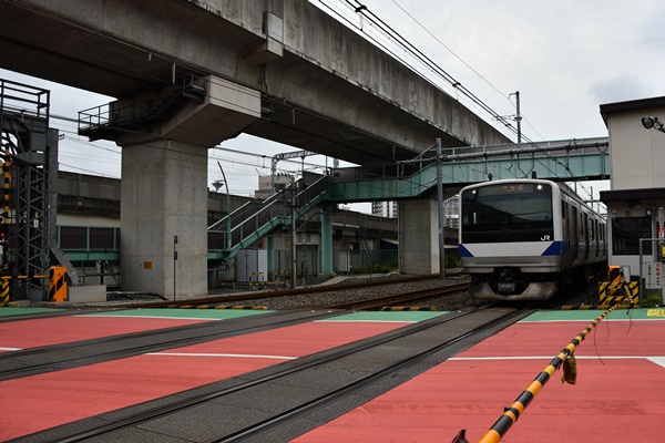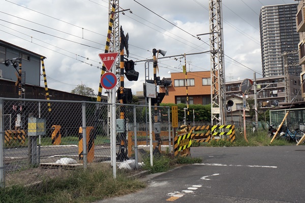 どちら側からも斜めに出入りするようになっています。十条駅を高架にする連続立体交差化が計画されており、この踏切は廃止対象になっています。