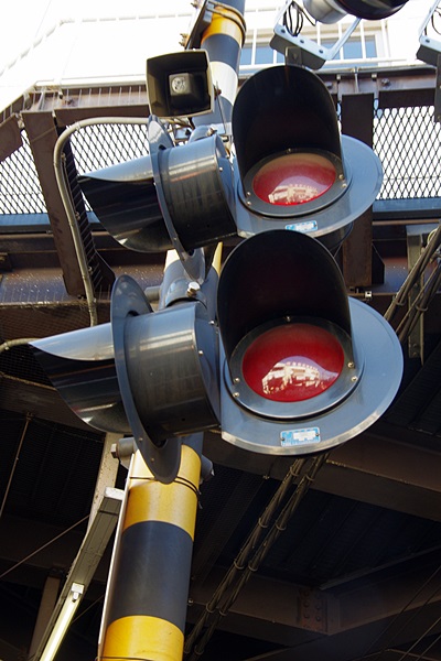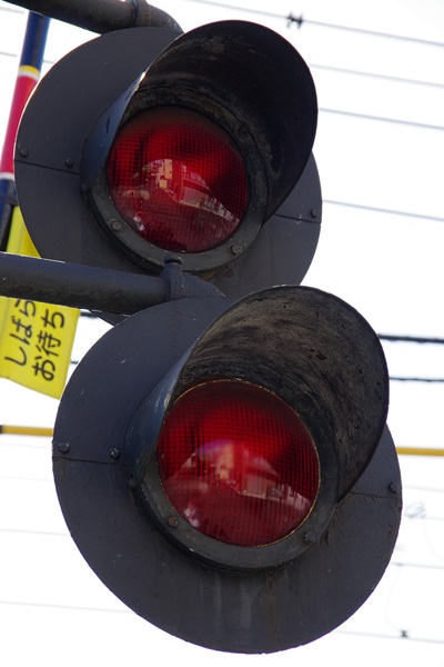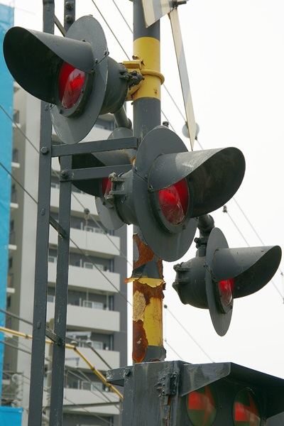 都電荒川線早稲田14号踏切の警報灯。同じように見えるけれど、