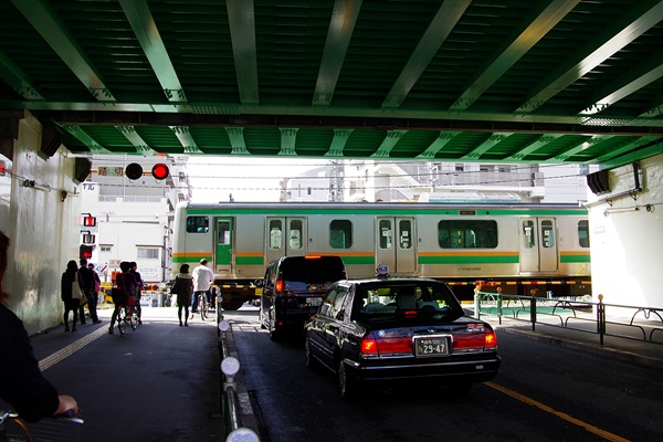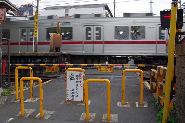 変則的ではありますが、交差点を斜めに横切る下高井戸1号踏切です。