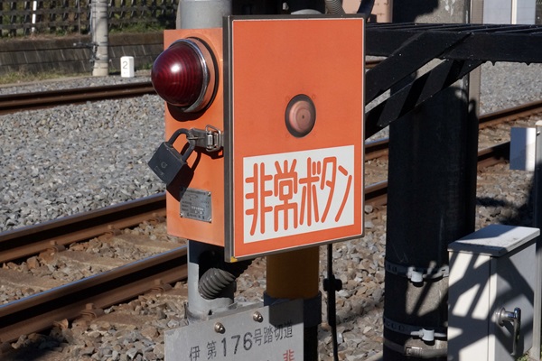 東武伊勢崎線 伊第176号踏切道の非常ボタン、昭電製です。