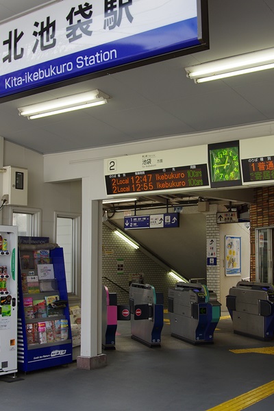 東武東上線の東第2号踏切です。東第1号踏切は廃止されているので、これが東上線の最初の踏切になります。ご覧の通り自動車は通れません。左側は北池袋駅のホームです。
