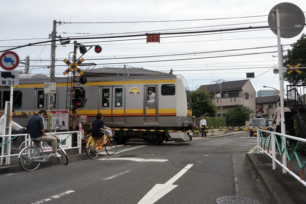 南武線分倍河原駅に隣接する小学校前踏切です。