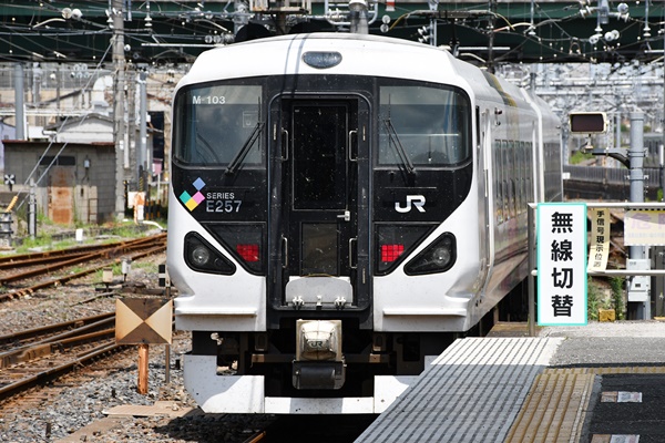 大宮駅を発車するE257系 M-103編成の回送列車です。