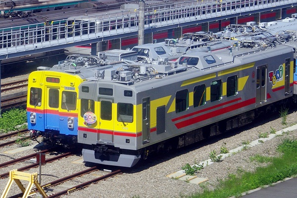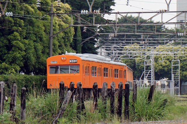 2011年に目撃したときはVVVFのケースが黒でしたが(「モヤ」の文字の下、架線柱が邪魔になっているところ)、