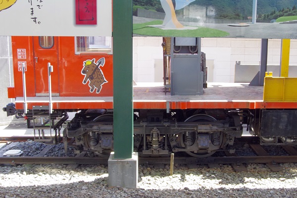 貨車は台車をはいていますが、先頭車の台車は確認できません。