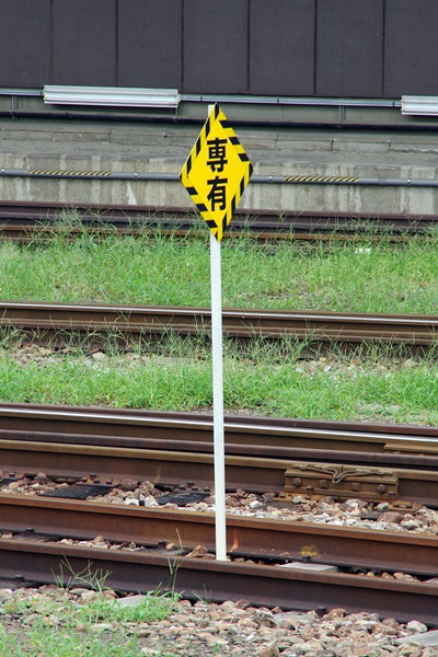 線路のど真ん中に立つ「専有」標識です。