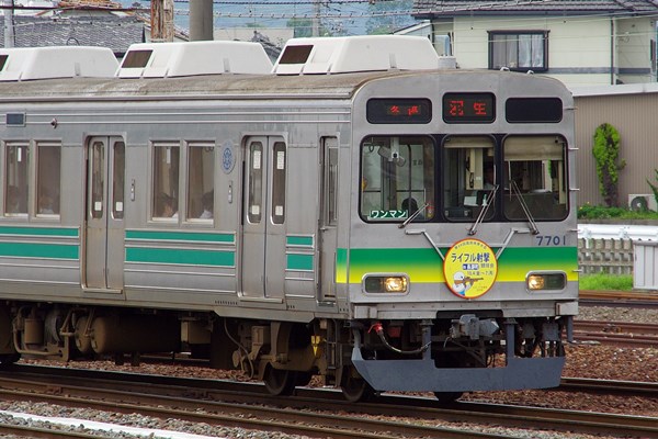 秩父鉄道クハ7701(元東急クハ8092)にに掲出されたヘッドマーク「第68回国体ライフル射撃競技会in長瀞町」です。
