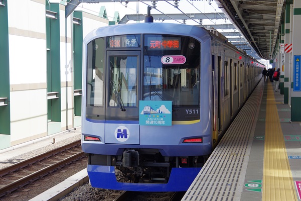 「みなとみらい線開通10周年」のヘッドマークを掲出した横浜高速鉄道クハY512です。