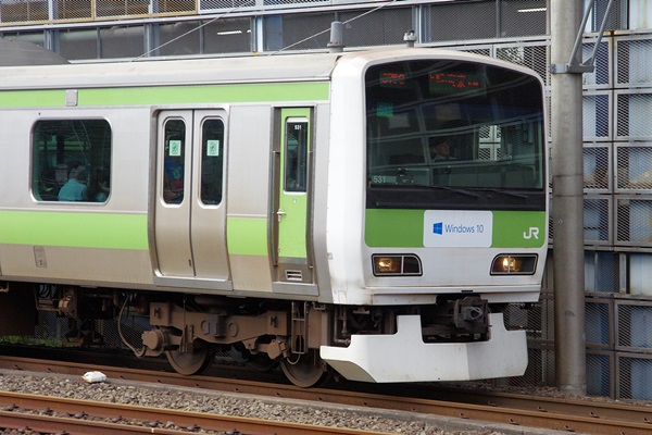 山手線531編成「Windows 10」ヘッドマーク車です。側面ラッピングはありません。