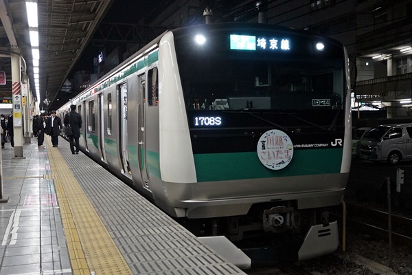 埼京線E233系114編成「冬のぶらぶら歩き川越さいたま」ヘッドマーク車です。