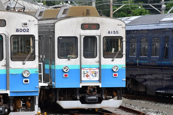 伊豆急8000系TA-5編成クモハ8155「伊東市制施行70周年」ヘッドマーク車です。