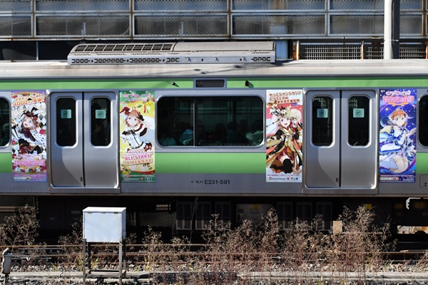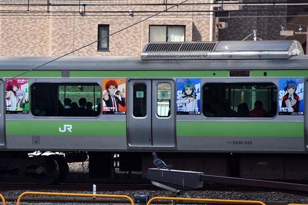 山手線E231系トウ525編成、「カードファイト」ラッピング広告車です。