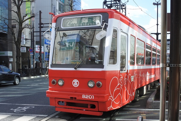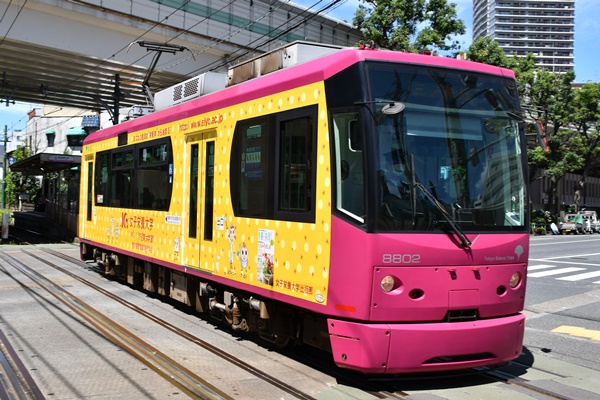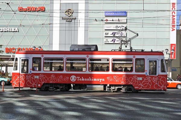 岡山電気軌道8201、「高島屋」ラッピング広告車です。東京にも高島屋はあるので、都電荒川線でも見たくなる。