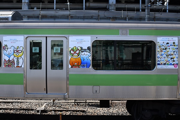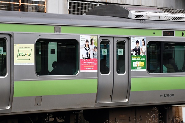 山手線E231系501編成、JR東日本「まもレール」ラッピング広告車です。