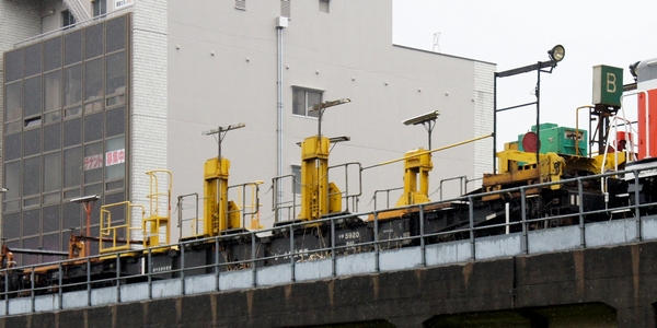 近江鉄道の長物車チ12です。チ11とユニットを組むレール運搬車ですが、車体と不釣り合いな台車が目立ちます。